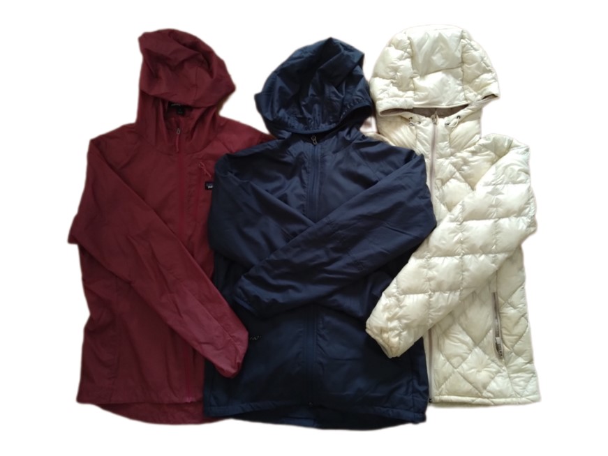 ミッドレイヤーは肌着の上に羽織る薄手のパーカーや薄手のウィンドブレーカーなど。上着は特に寒暖差調整で脱いだり着たりすることが多いので、ジッパー式のものがよいでしょう。薄手のウィンドブレーカーは持ち運びやすく、ちょっとした雨対策にもなるのでおすすめです。