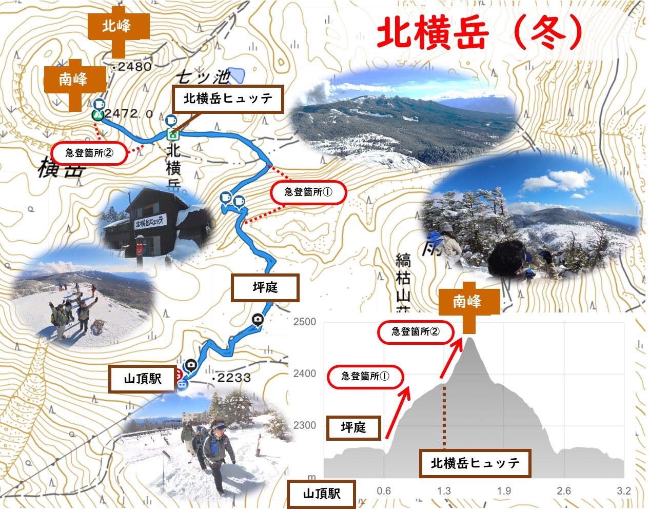 ※初級ヘタレ山楽家が勝手な主観で判断する北横岳・冬のロープウェイからのルート評価。