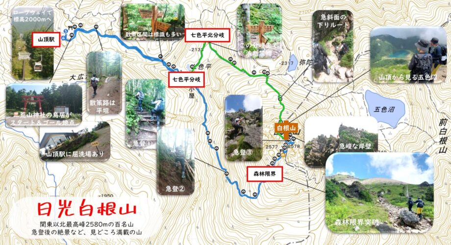 ルート/山頂駅~七色平分岐~白根山頂~弥陀ヶ池~七色平北分岐~山頂駅